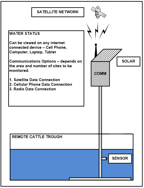 The expansion of low cost satellite communications now makes it possible to monitor water resources at the “fringes” of agriculture. With satellites overhead any remote water source can be monitored from your kitchen or ranch office for a low monthly cost.